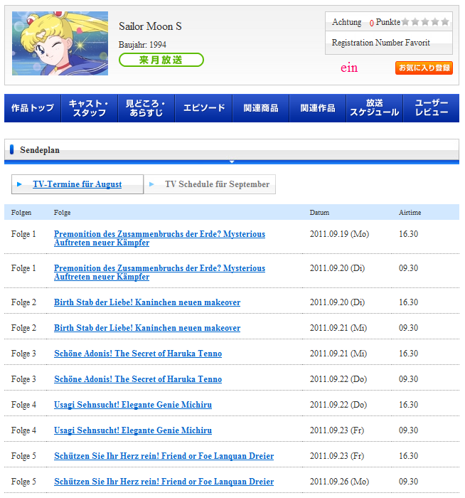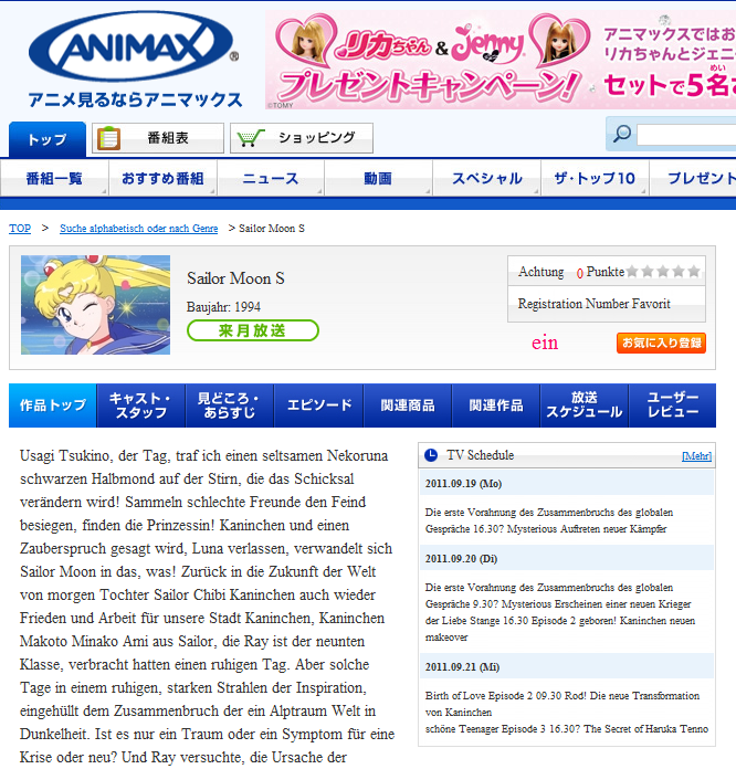 Auch wenn es nur alte Folgen sind, und TOEI anteile an Animax hat, ist es trotzem gut das SM in so einer guten zeit im TV läuft.