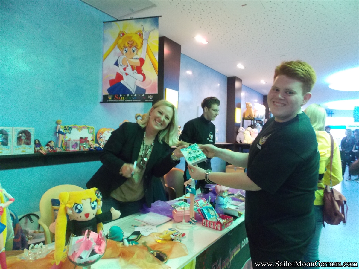 unserem Stand Platz, begrüßte die vielen Sailor Moon-Fans und stand ihnen für