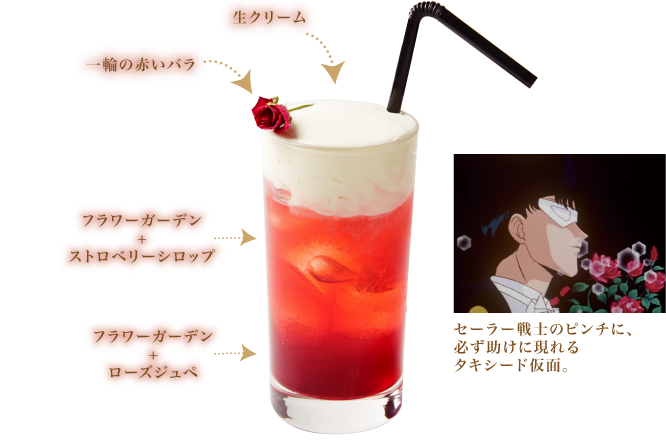 Sortiment an Getränken und Süßspeisen des Sailor Moon Cafés von Namco: