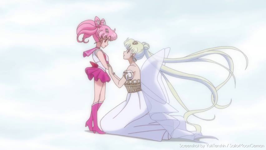 Sailor Chibi Moon ist überglücklich, dass es ihrer Mama gut geht. Diese erklärt ihr, dass sie nur durch Chibi Moons Erwachen wieder leben kann. Durch sie erfahren auch die Senshi, dass es sich bei Nemesis und Death Phantom nur um eine Illusion des Schwarzkristalls gehandelt hat. Neo Queen Serenity sieht in ihrer Tochter die einzige Möglichkeit, das Böse zu versiegeln. Daher schickt sie Chibi Moon zu Sailor Moon und Tuxdeo Mask, zusammen mit einem Moon Rod für Chibi Moon, der Neo Queen Serenitys Kräfte vereint.