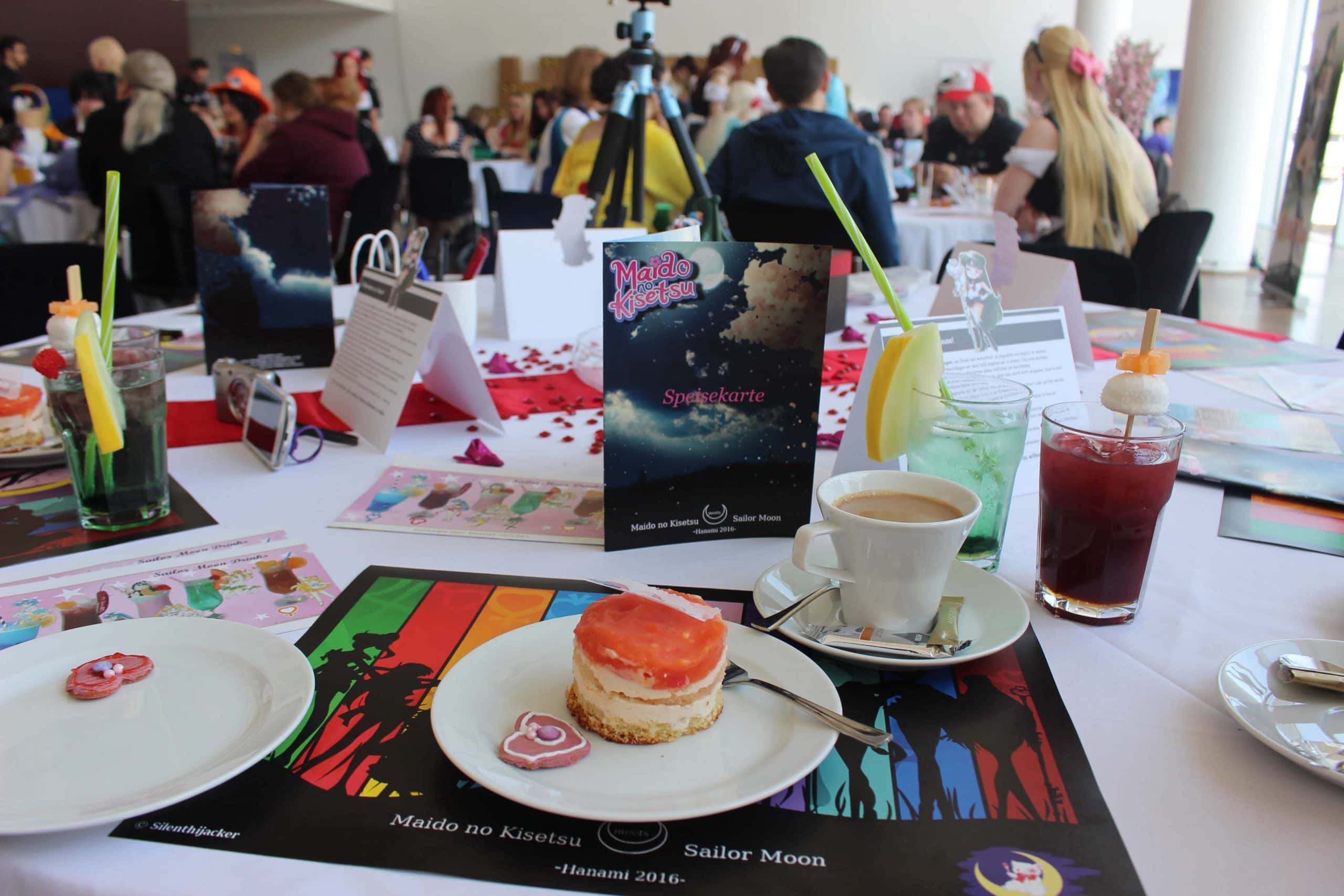 Getreu den offiziellen „Sailor Moon“-Cafés in Japan, wollten wir auch hierzulande – wenn auch in kleiner Form – einen Hauch vom „Sailor Moon“-Café Feeling herzaubern. In Zusammenarbeit mit der Maid-Gruppe „Maido no Kisetsu“, der „Manga Küche“, sowie der Hanami Convention in Ludwigshafen, haben wir ein ‚Maid Café‘ ganz im Zeichen von „Sailor Moon“ auf der Hanami 2016 (& 2017) organisiert. Neben Maids, die im Style der Sailor-Kriegerinnen Getränke und Kuchen (ebenfalls im „Sailor Moon“-Style) servierten, überzeugte das Maid Café mit zahlreichen Dekorationen rund um „Sailor Moon“.